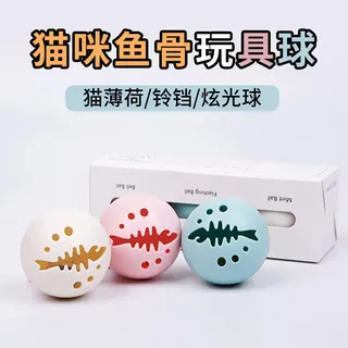 猫咪鱼骨形玩具球 发光发声 自嗨神器解闷玩具三个盒装
